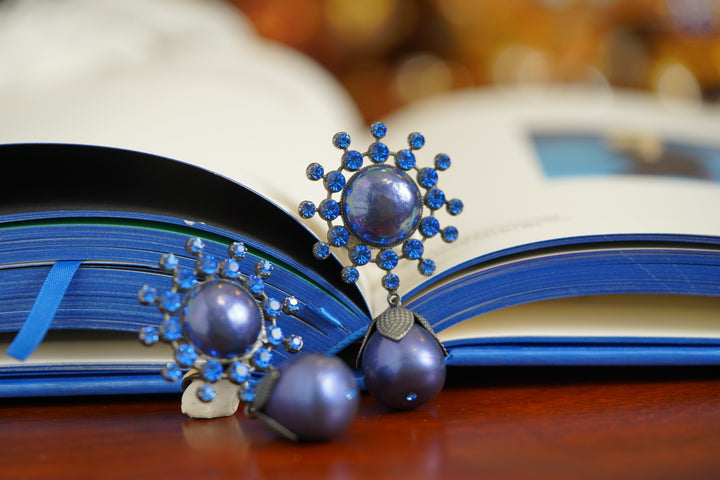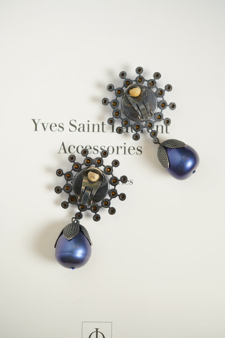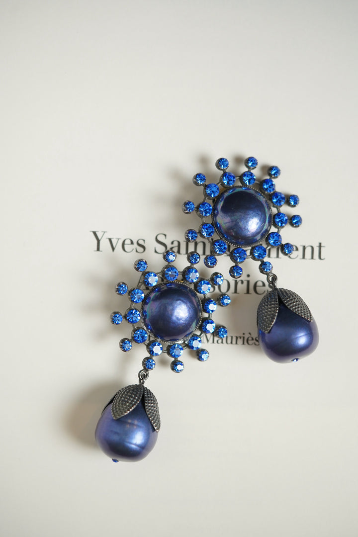 Yves Saint Laurent 1995 Blue Glasse Pearl Earrings